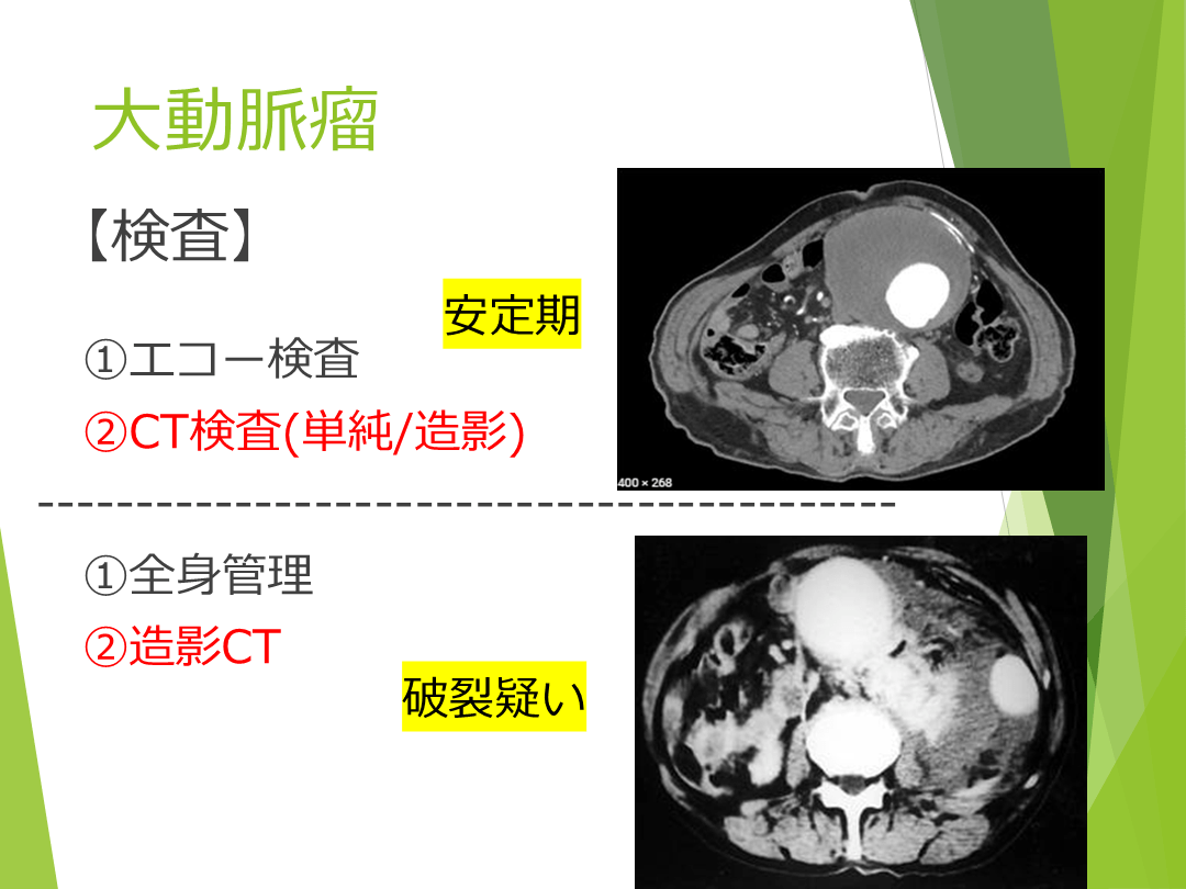 破裂疑い 安定期 大動脈瘤 【検査】