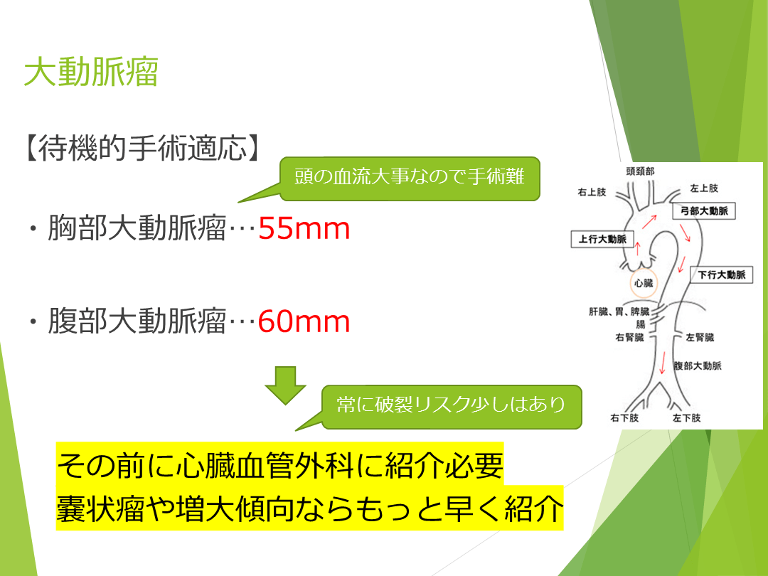 ・腹部大動脈瘤…60mm その前に心臓血管外科に紹介必要