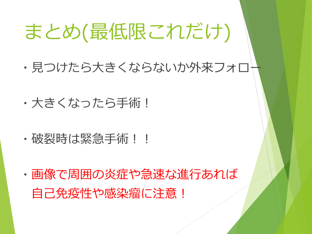 #15. まとめ(最低限これだけ) ・見つけたら大きくならないか外来フォロー
