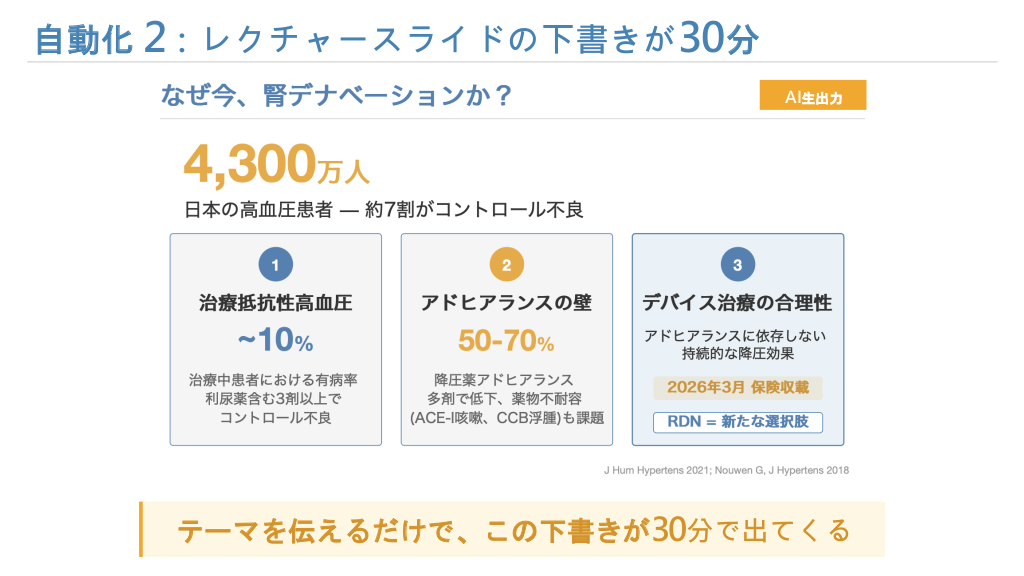 #5. 自動化 2:レクチャースライドの下書きが30分 AI生出力 テーマを伝えるだけで、この下書きが30分で出てくる
