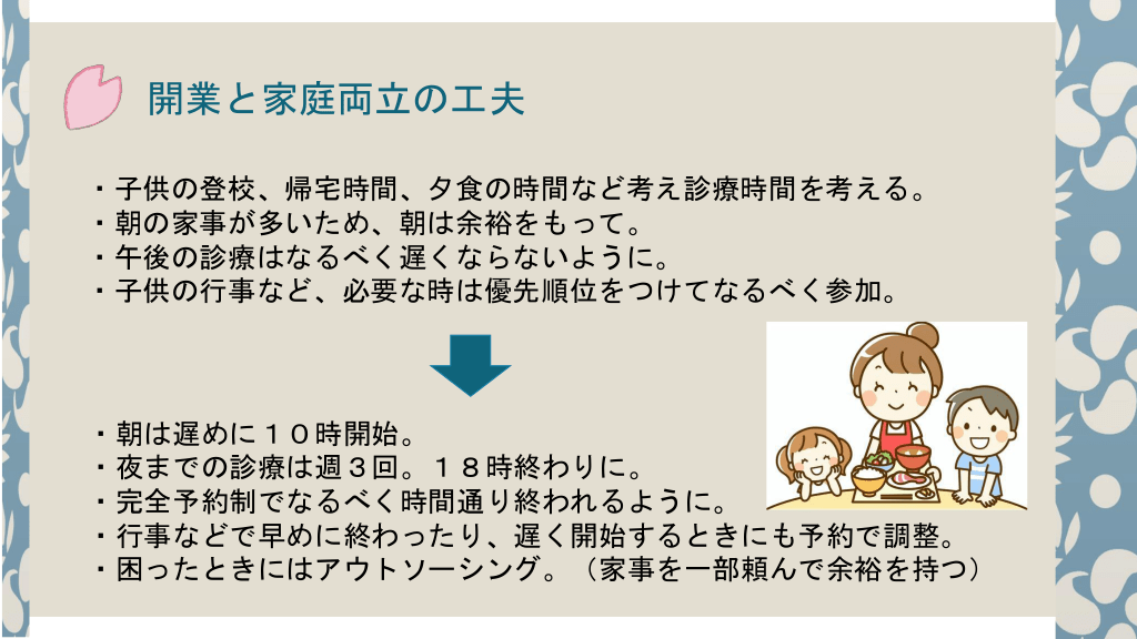 開業と家庭の両立の工夫と経営者としてのジレンマ