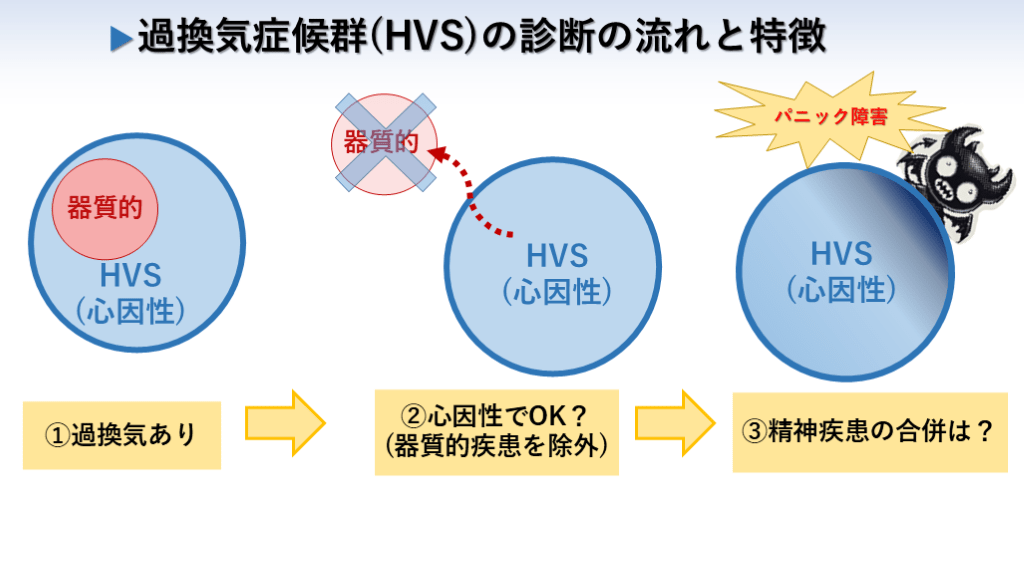 #8. 過換気症候群(HVS)の診断の流れと特徴 ①過換気あり ③精神疾患の合併は? ②心因性でOK?
