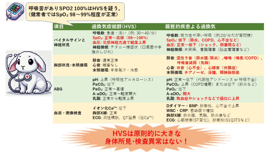 身体所見・検査異常はない! 呼吸苦がありSPO2 100%はHVSを疑う。
