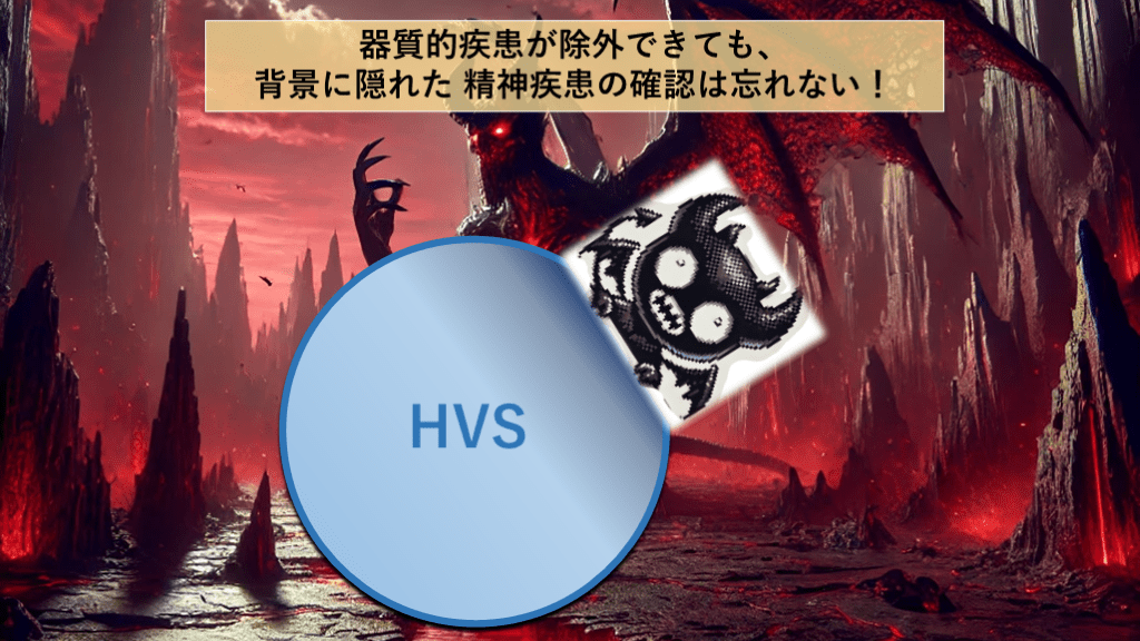 背景に隠れた 精神疾患の確認は忘れない! HVS