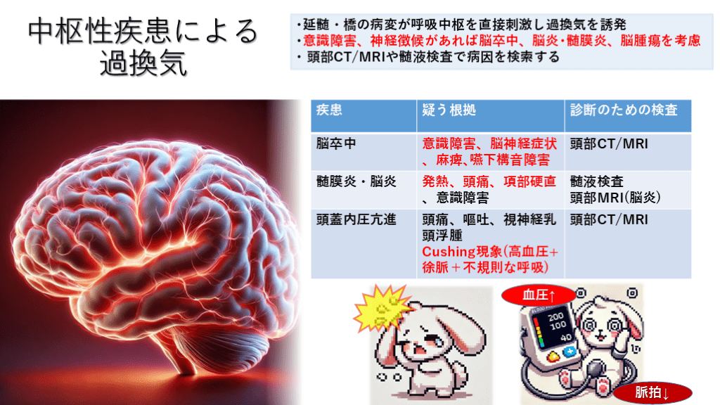 #28. ・延髄・橋の病変が呼吸中枢を直接刺激し過換気を誘発