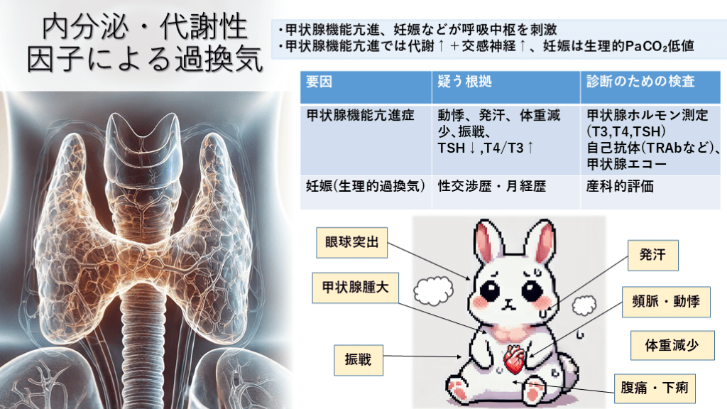 因子による過換気 ・甲状腺機能亢進、妊娠などが呼吸中枢を刺激