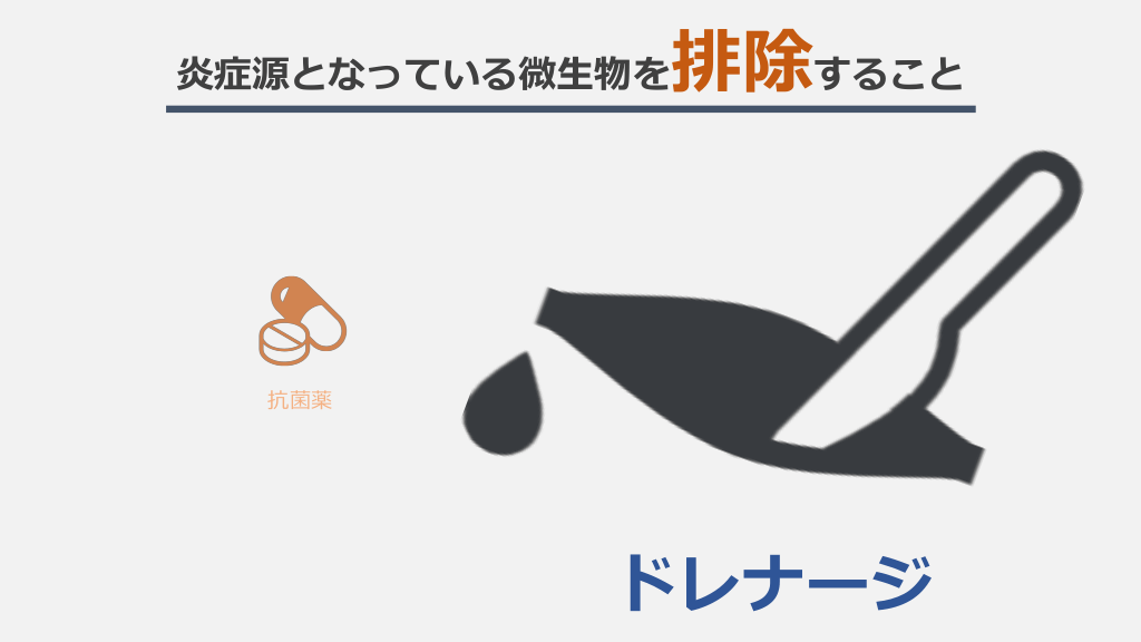 炎症源となっている微生物を 排除すること 抗菌薬 ドレナージ #27.