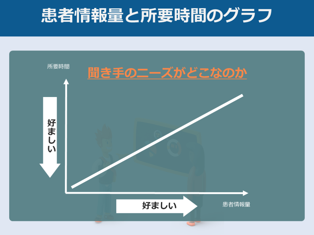 #8. 患者情報量と所要時間のグラフ 所要時間 患者情報量 好ましい 好ましい 聞き手のニーズがどこなのか