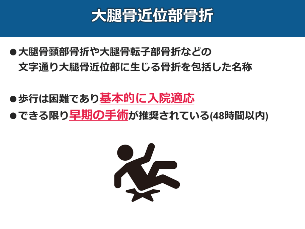 文字通り大腿骨近位部に生じる骨折を包括した名称