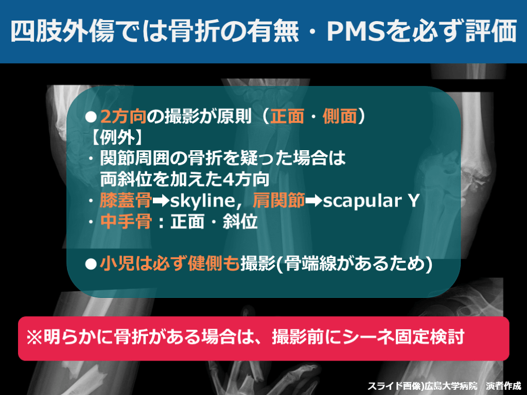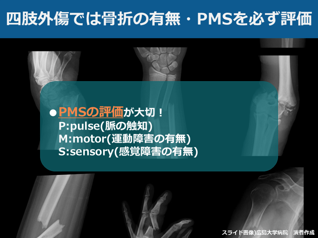 #19. 四肢外傷では骨折の有無・PMSを必ず評価 スライド画像)広島大学病院 演者作成