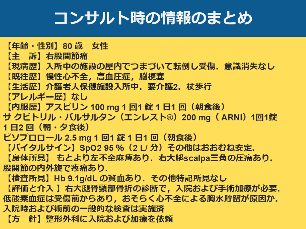 【方 針】整形外科に入院および加療を依頼 コンサルト時の情報のまとめ