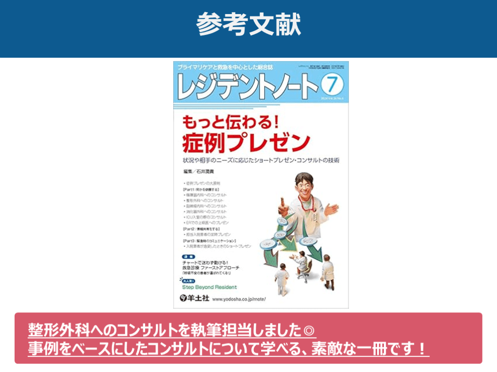 #26. 参考文献 『臨床研修の羅針盤』 羊土社 出版 整形外科へのコンサルトを執筆担当しました◎