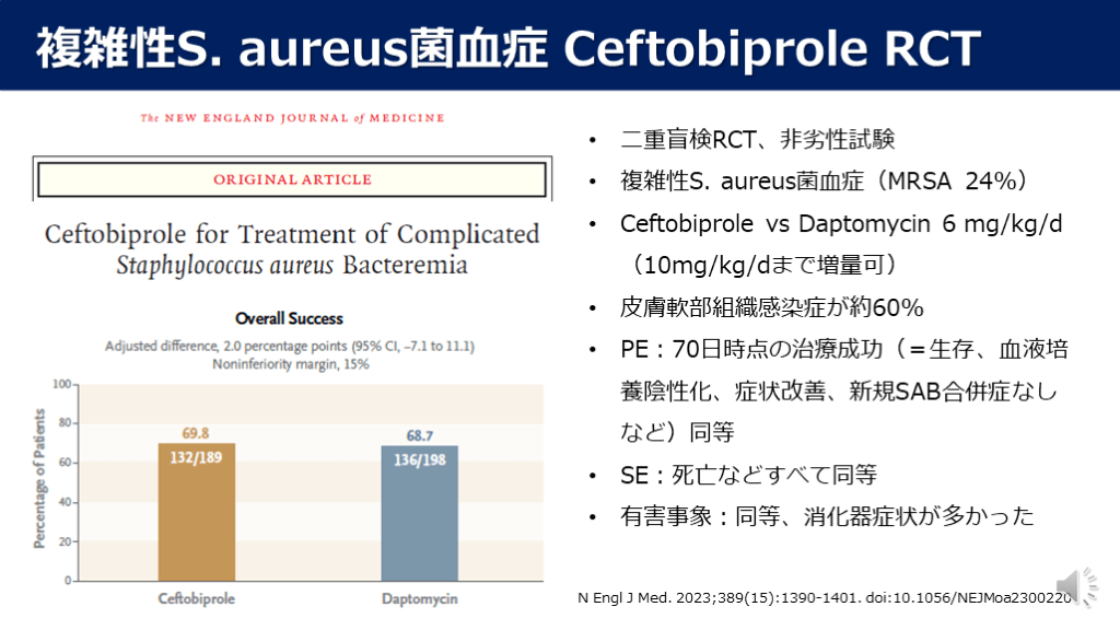 #8. 複雑性S. aureus菌血症 Ceftobiprole RCT 二重盲検RCT、非劣性試験