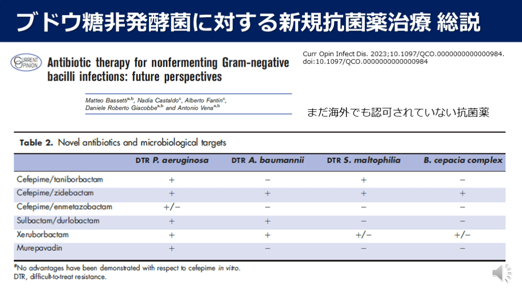 #102. ブドウ糖非発酵菌に対する新規抗菌薬治療 総説 Curr Opin Infect Dis. 2023;10.1097/QCO.0000000000000984.
