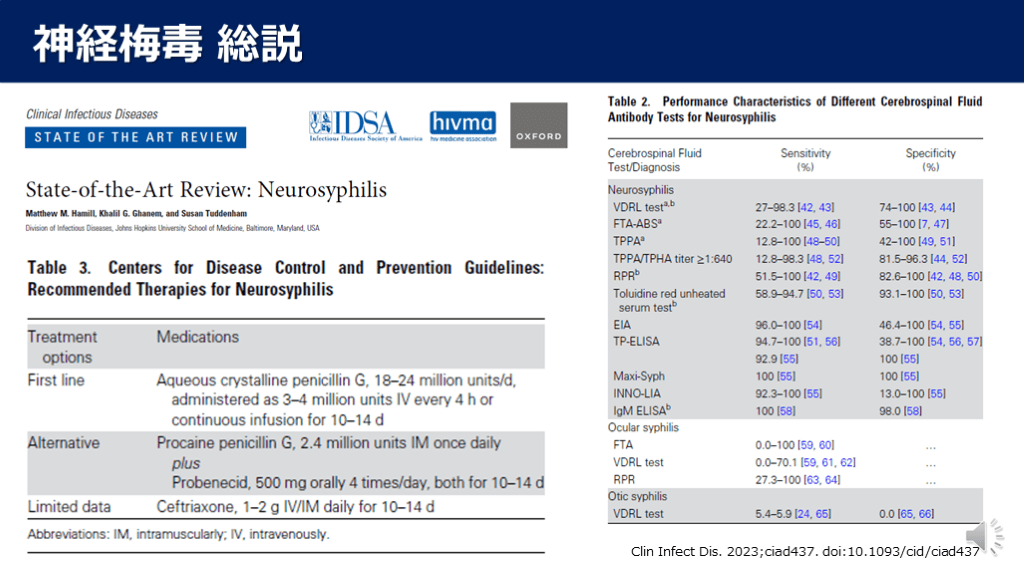 #106. 神経梅毒 総説 Clin Infect Dis. 2023;ciad437. doi:10.1093/cid/ciad437