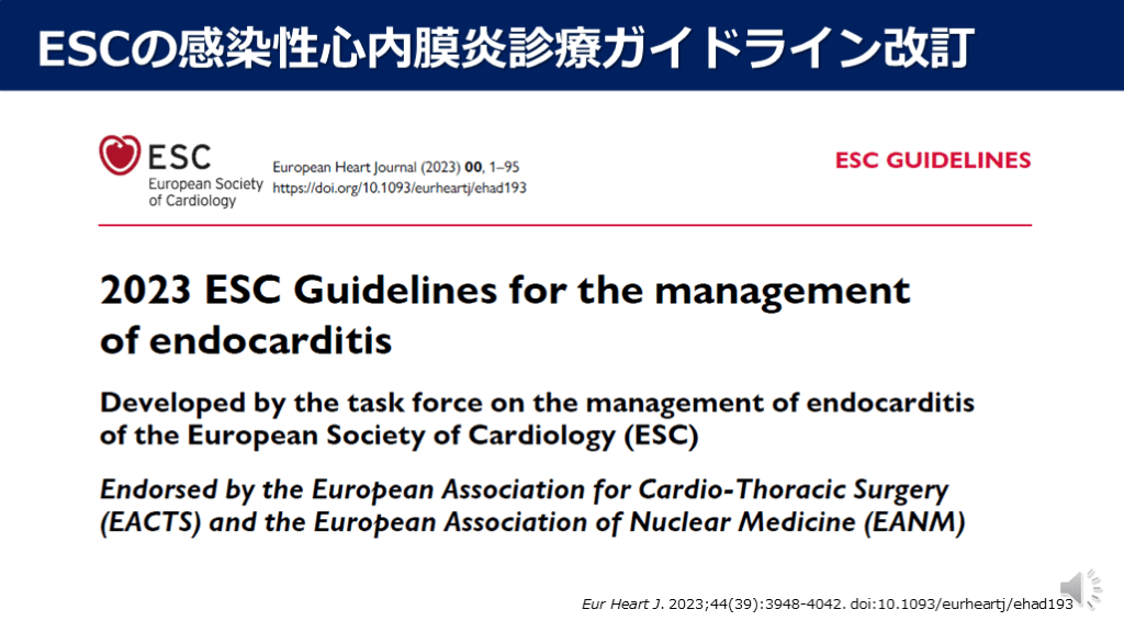 #114. ESCの感染性心内膜炎診療ガイドライン改訂 Eur Heart J. 2023;44(39):3948-4042. doi:10.1093/eurheartj/ehad193