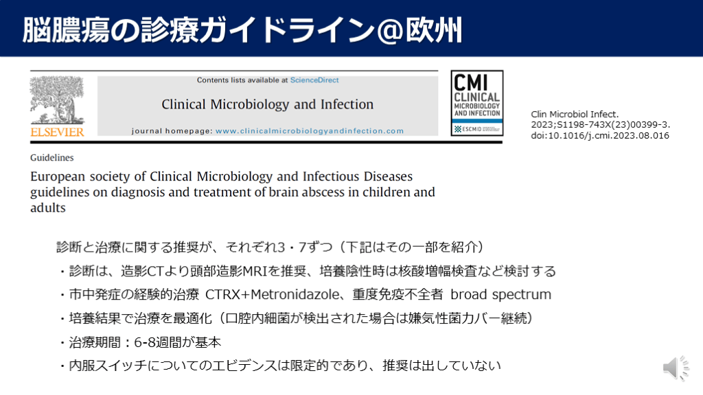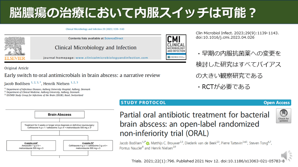 #120. 脳膿瘍の治療において内服スイッチは可能? Clin Microbiol Infect. 2023;29(9):1139-1143.
