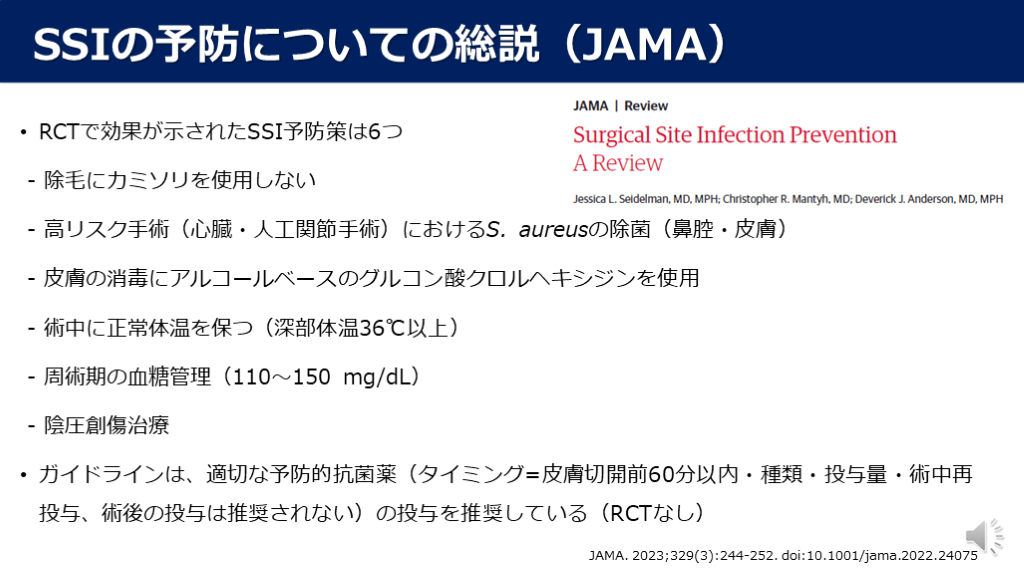 SSIの予防についての総説(JAMA) JAMA. 2023;329(3):244-252. doi:10.1001/jama.2022.24075