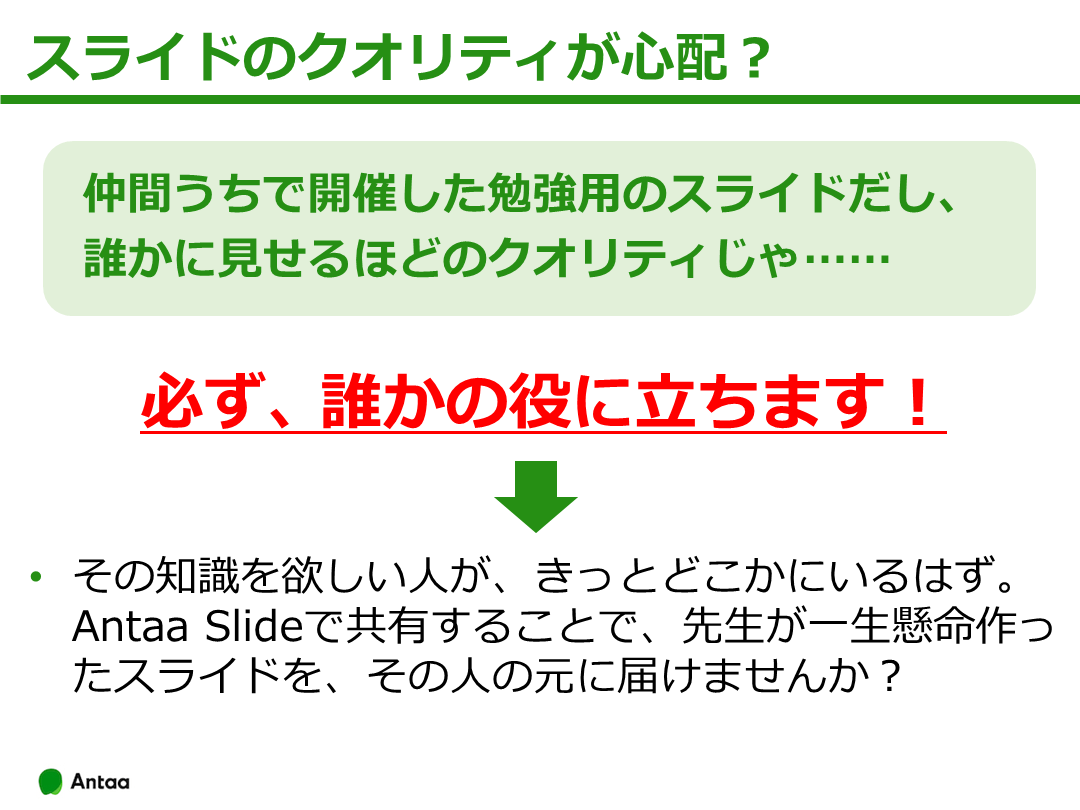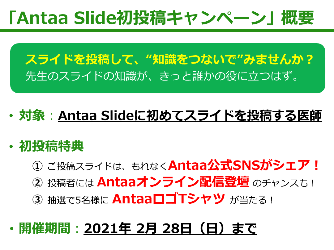 初めてのスライド投稿をサポートする「Antaa Slide初投稿キャンペーン」を開催中です。