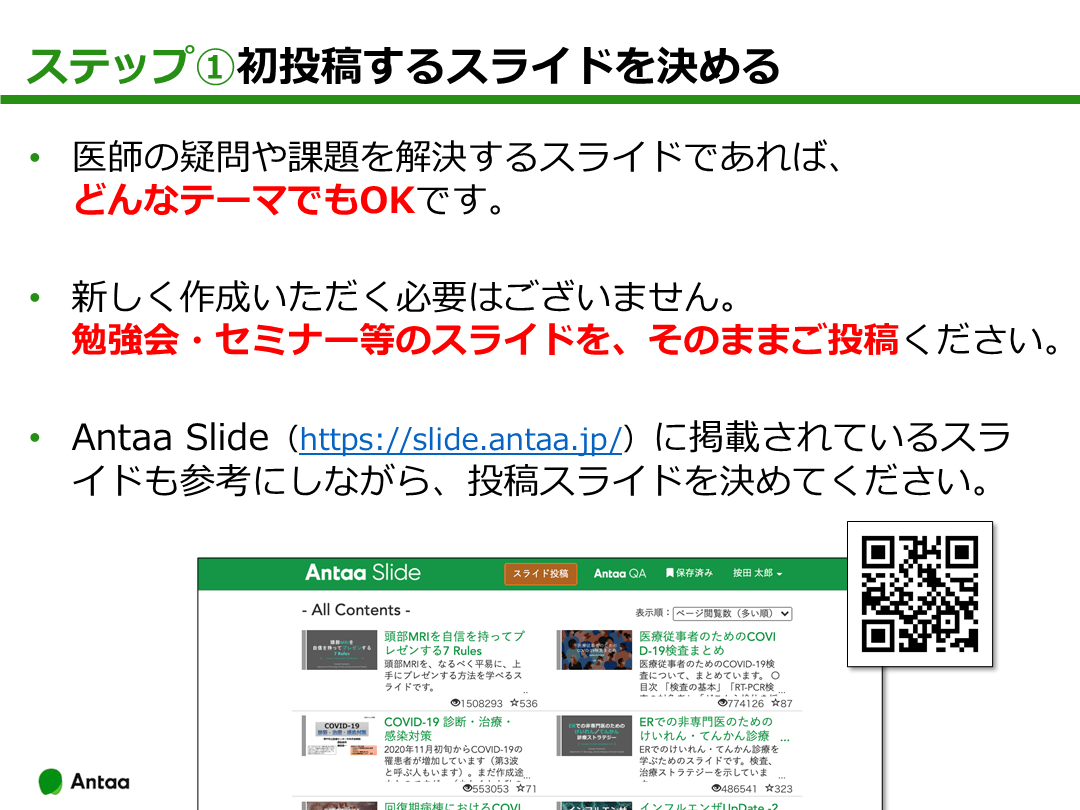 Antaa Slideに初めてスライドを投稿する医師