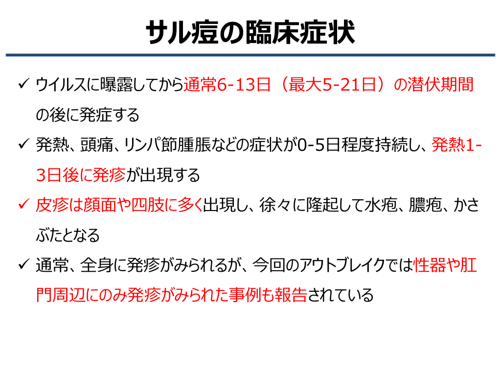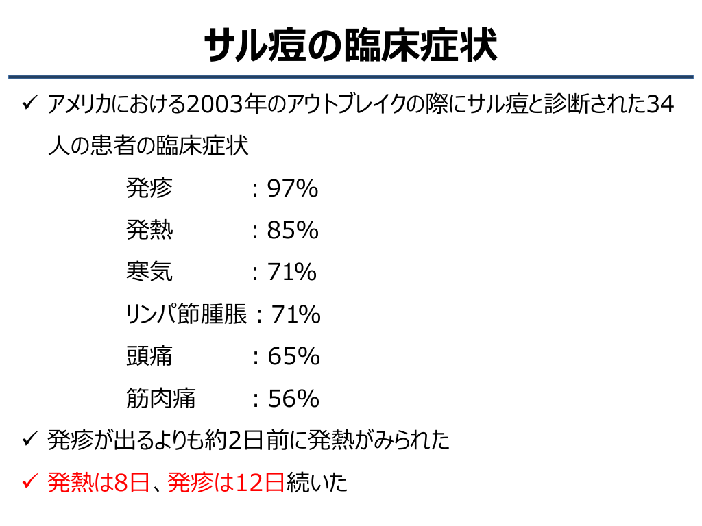 サル痘の臨床症状と合併症