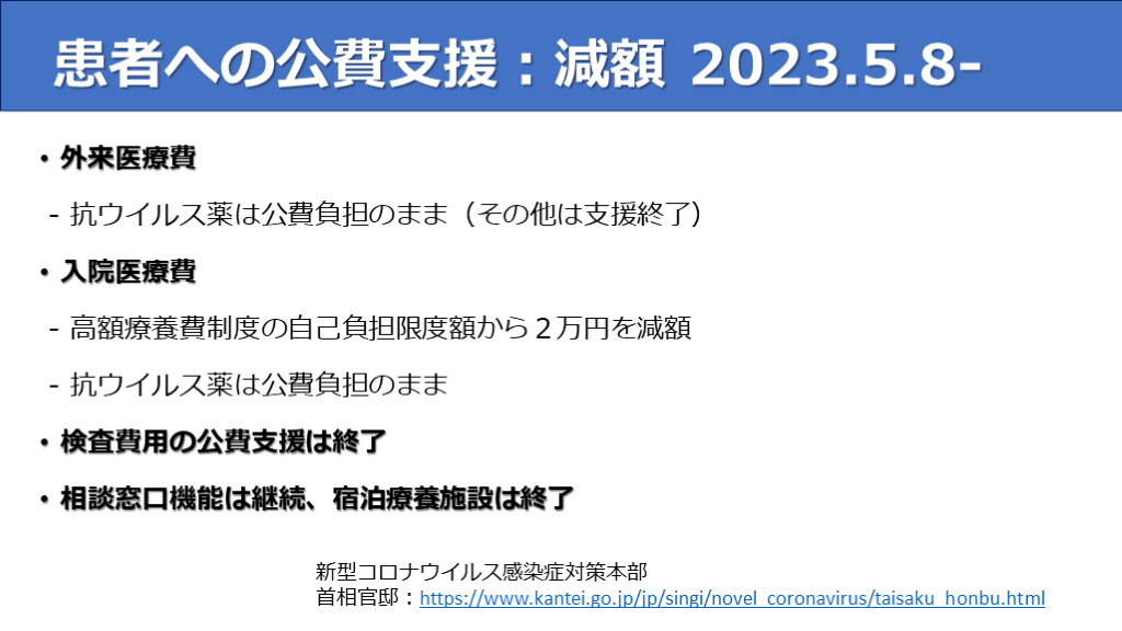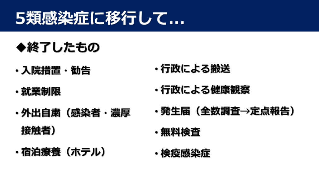 ウイルスそのものの性質・基本的な感染対策 5類感染症に移行しても... COVID-19患者への公費支援の変更点 #12. 外出自粛や就業制限の法的根拠がなくなる