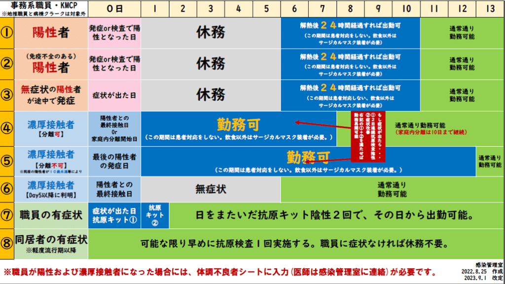 濃厚接触者:最終接触から7日目までマスク・手洗い・換気など