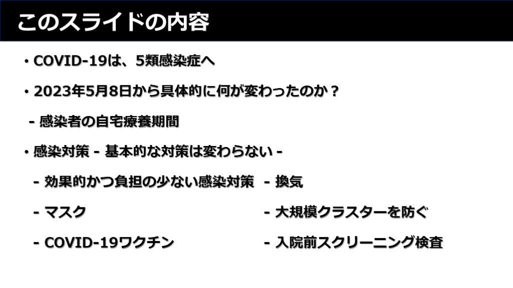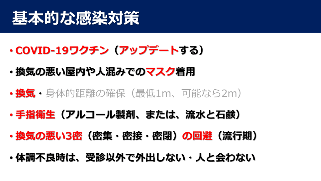 - 感染対策がコロナ前に戻ることはない(マスクと換気の重要性 )