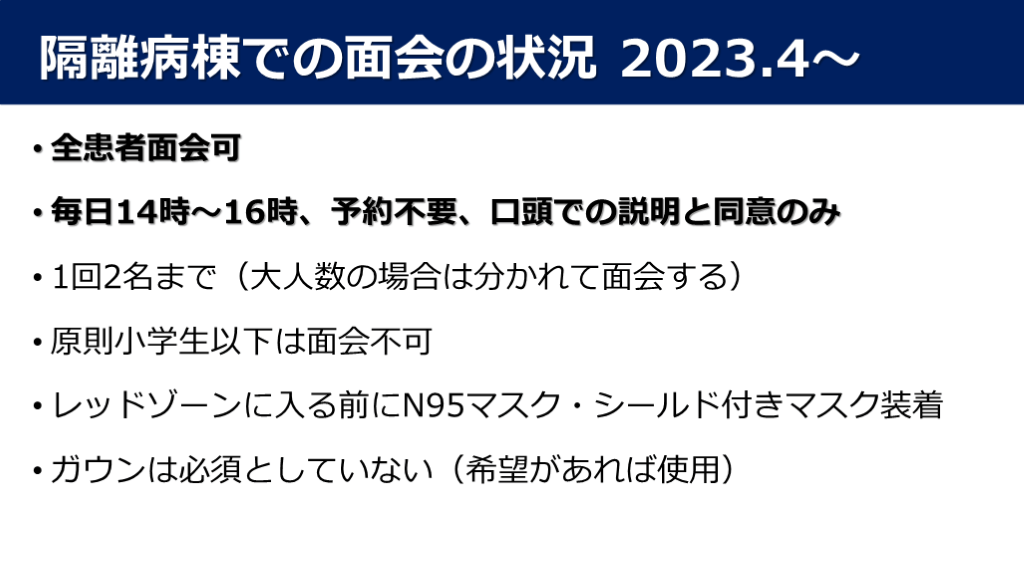 - 面会者が無症状であること・マスク着用は必要 面会制限について 第118回新型コロナウイルス感染症対策アドバイザリーボード資料3-10. 医療機関と高齢者施設における新型コロナウイルス対策についての見解 - 感染症法上の類型変更を見据えて - (2023.3.8) #30.
