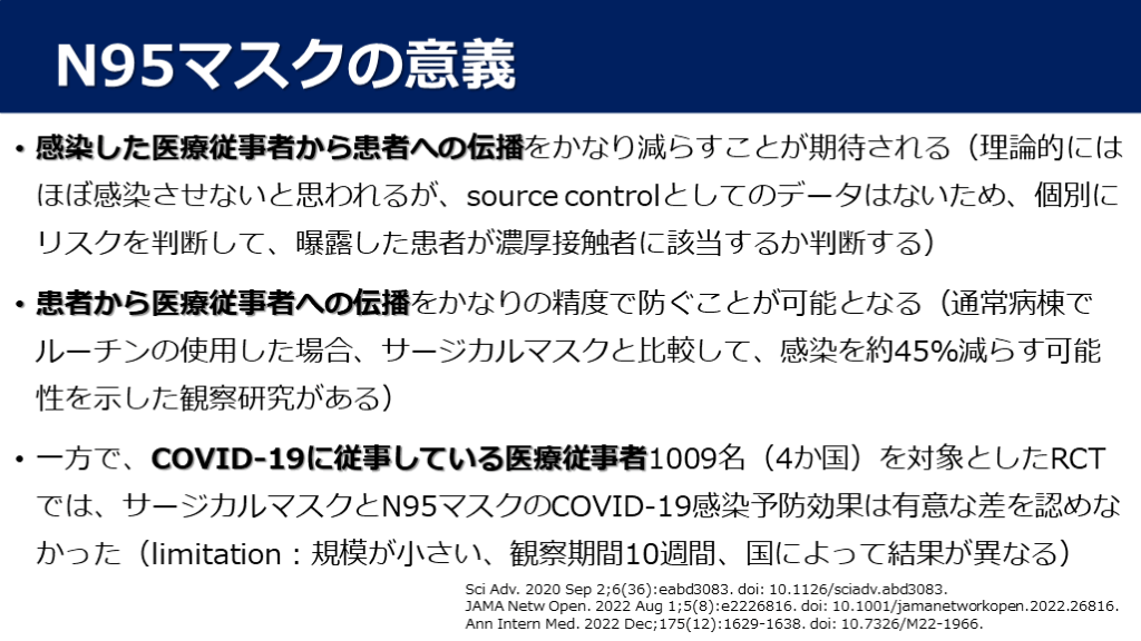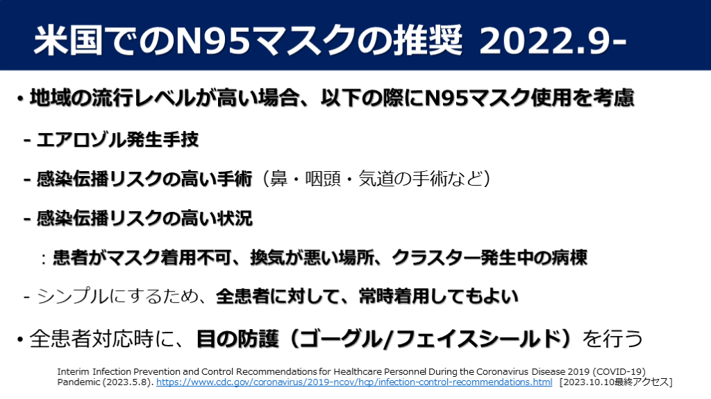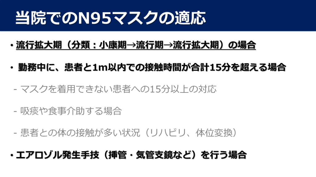 流行期は、看護師とリハビリ技師などはルーチンのN95マスク使用を検討する