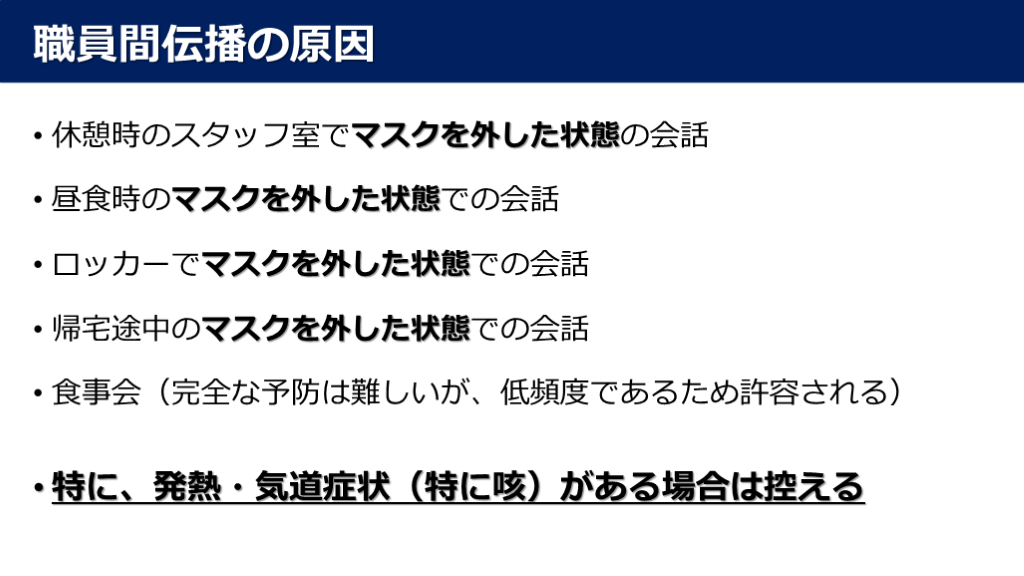 特に、発熱・気道症状(特に咳)がある場合は控える 職員間伝播の原因 入院前スクリーニング検査の見直し #100.