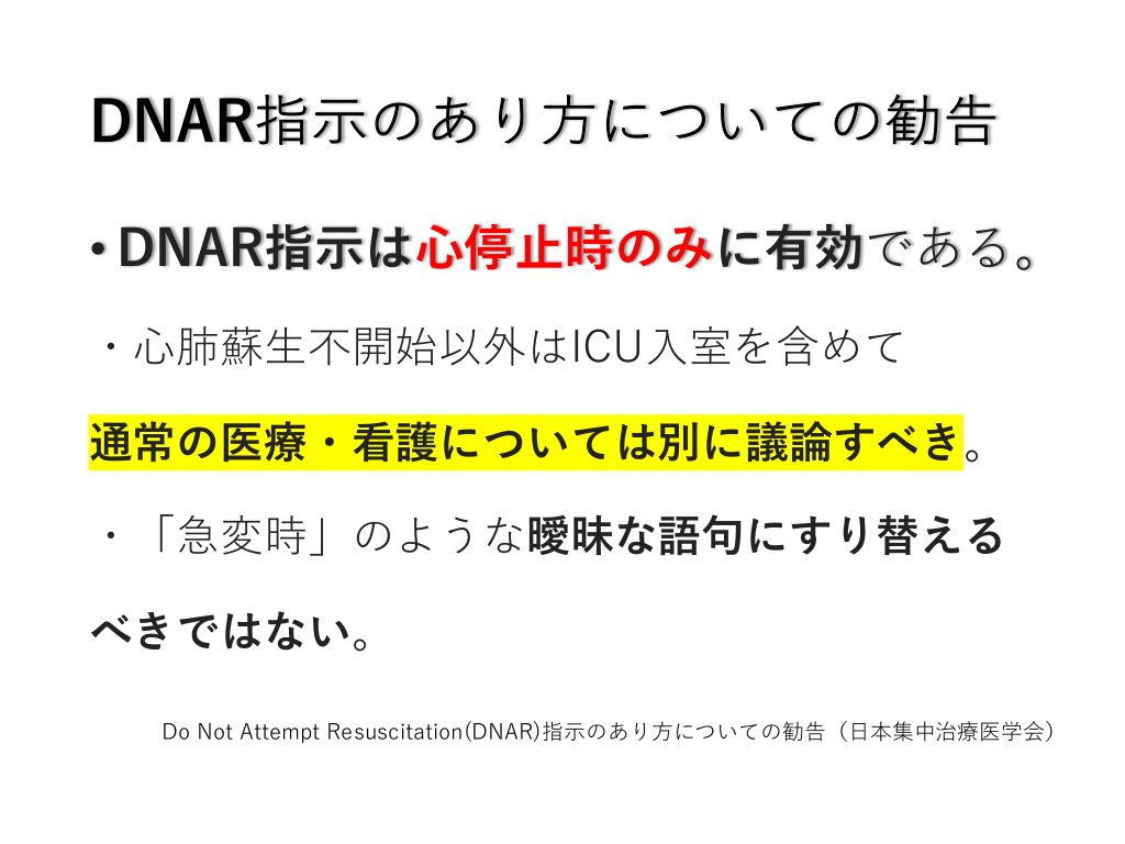 #8. DNAR指⽰のあり⽅についての勧告 (⽇本集中治療医学会)