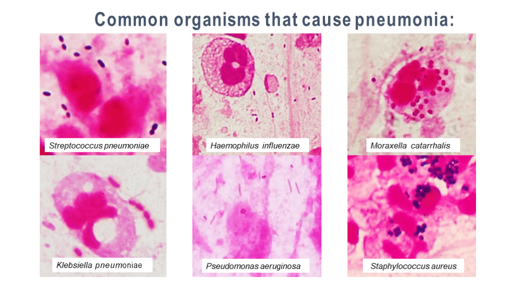 #3. Common organisms that cause pneumonia: Streptococcus pneumoniae Haemophilus influenzae Moraxella catarrhalis Klebsiella pneumoniae Pseudomonas aeruginosa Staphylococcus aureus
