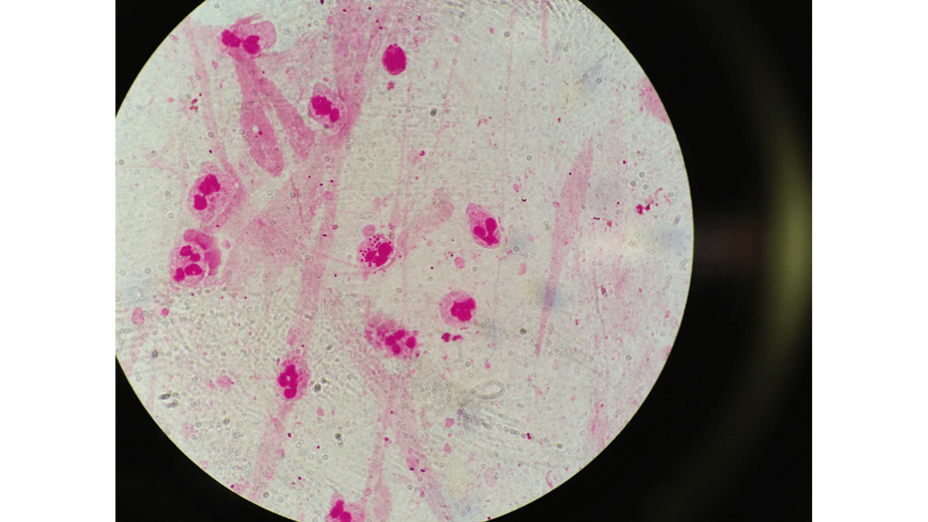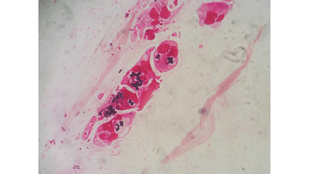 The following slides are a collection of sputum gram stain samples. These slides provide a visual guide for the identification of bacteria based on their microscopic characteristics.