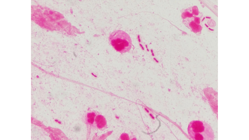 It can be confused with other gram-negative rods due to the presence of pink mucoids that masks its “thin body” characteristic.