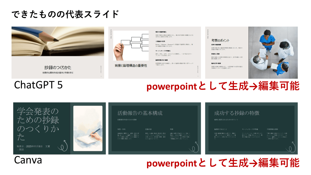 #3. できたものの代表スライド ChatGPT 5 powerpointとして生成→編集可能 Canva powerpointとして生成→編集可能