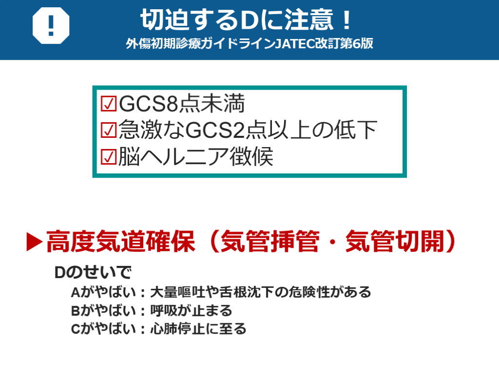 Cがやばい:心肺停止に至る ☑GCS8点未満