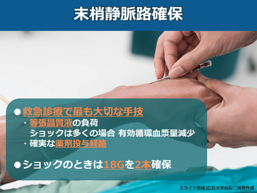 リンゲル液で2本確保で! この患者さんを