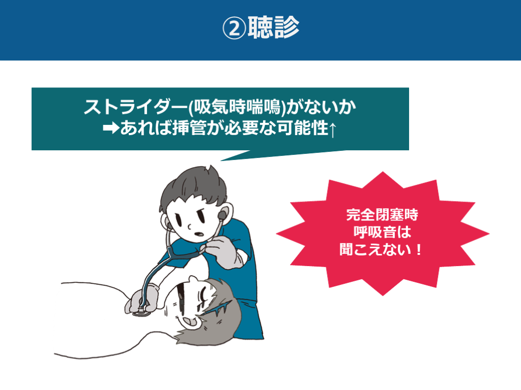 #28. ②聴診 ストライダー(吸気時喘鳴)がないか