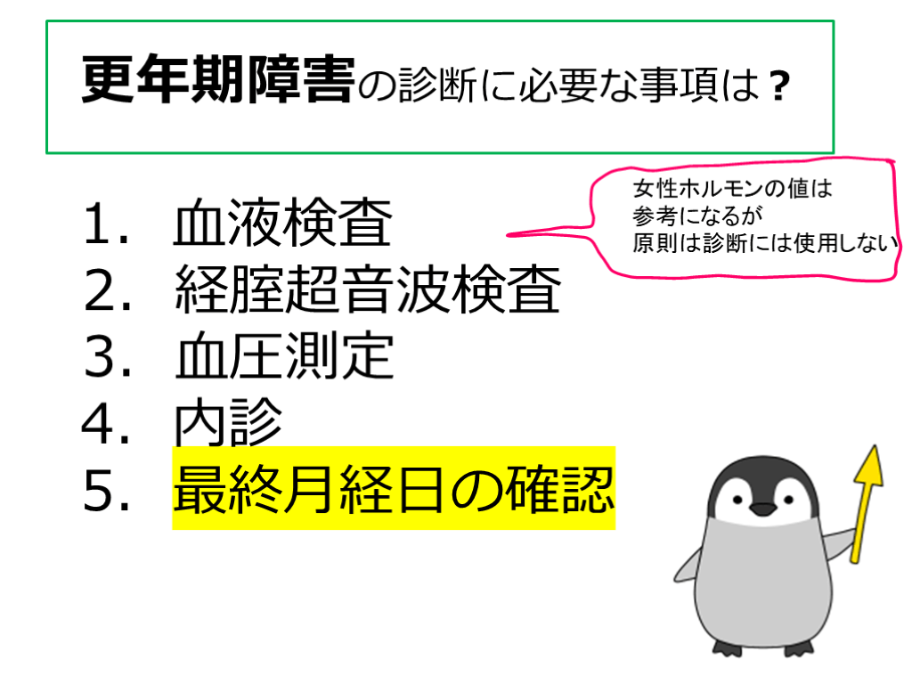 #4. 更年期障害の診断に必要な事項は? 1. 血液検査