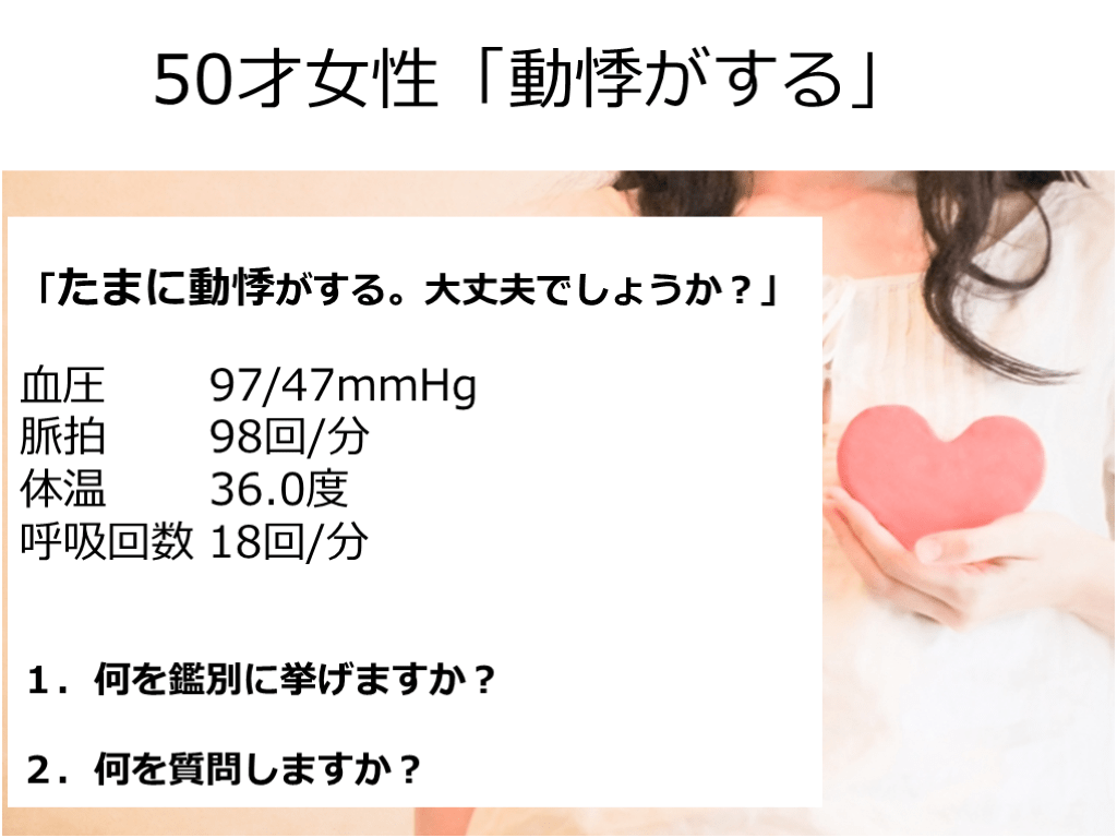 #7. 【鑑別】50才女性 動悸 1.心疾患