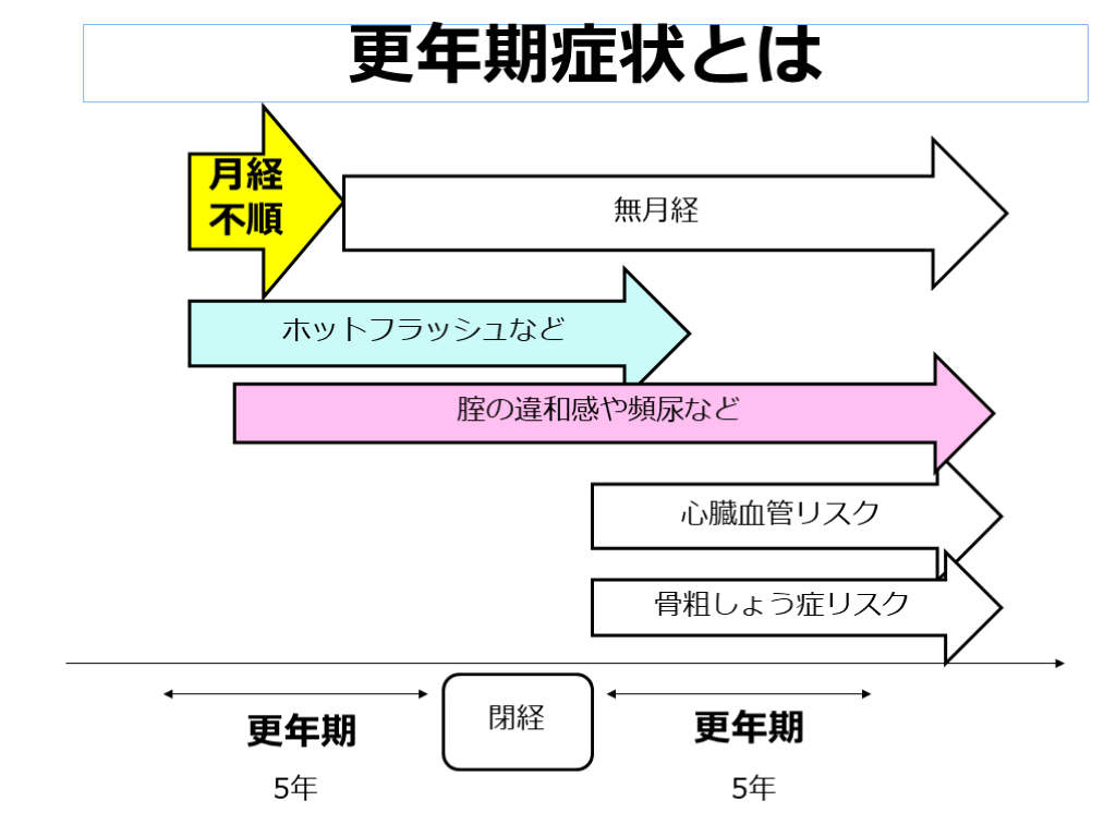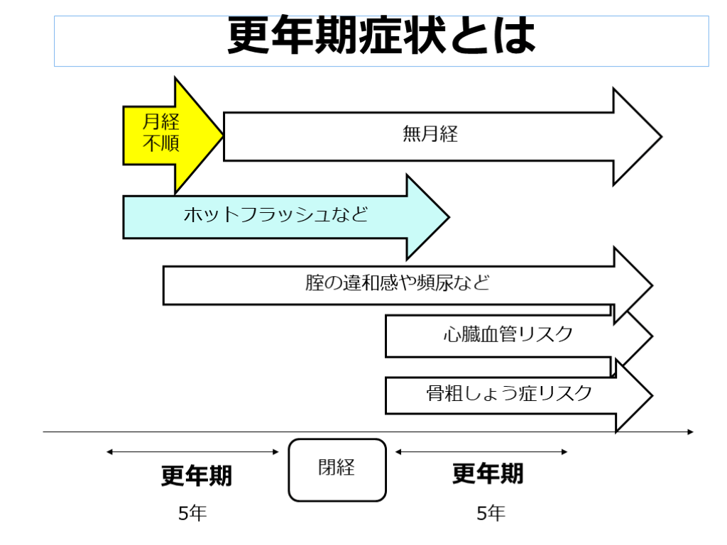 #10. 閉経 更年期 更年期 5年 5年 ホットフラッシュなど 心臓血管リスク 腟の違和感や頻尿など 骨粗しょう症リスク 月経