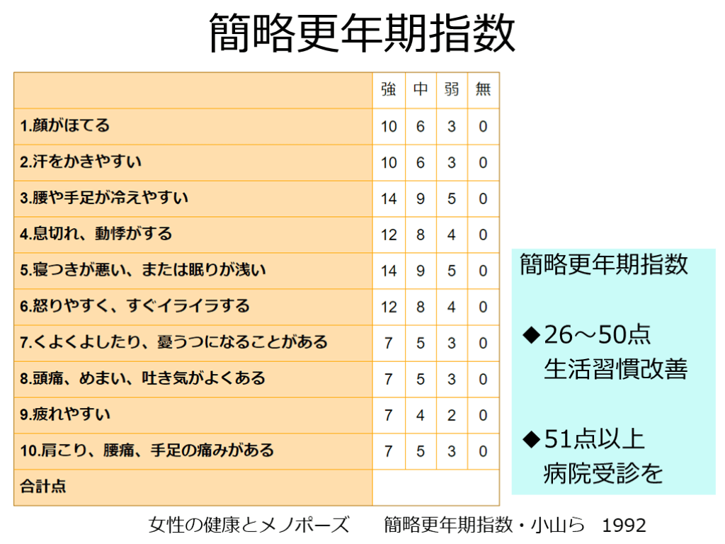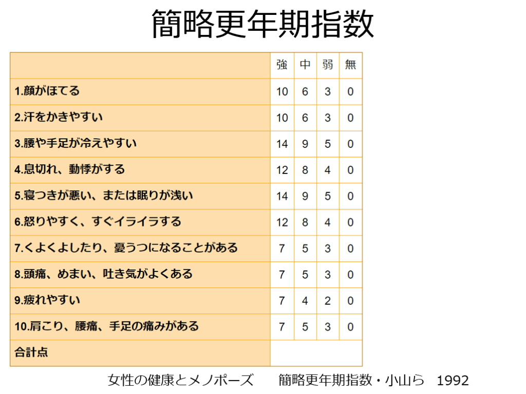 #12. 女性の健康とメノポーズ 簡略更年期指数・小山ら 1992 簡略更年期指数