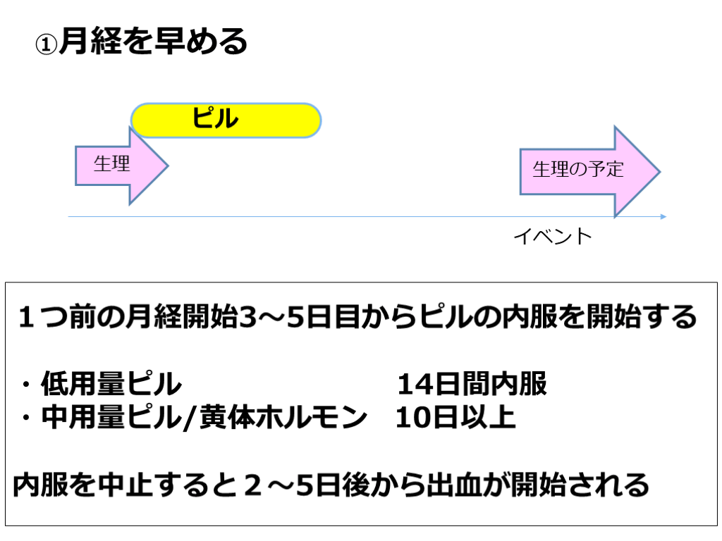 の生理 2~3日 消退出血 月経予定日5日前からピルの内服を開始する