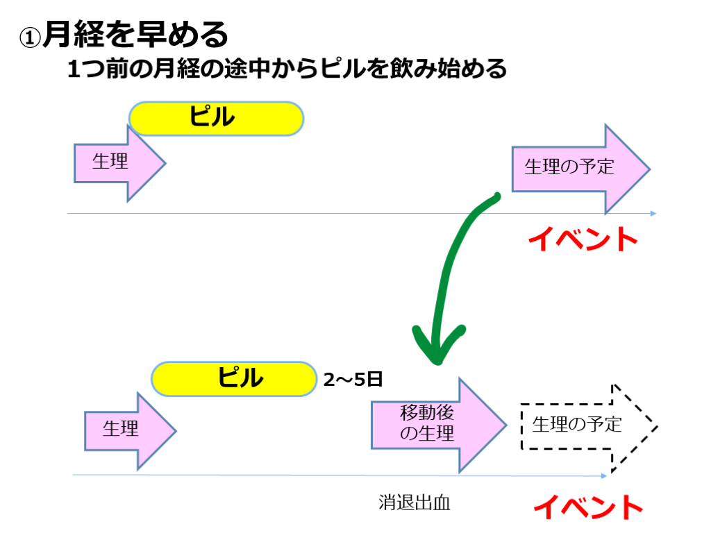 #32. ①月経を早める 生理 生理の予定 ピル ピル イベント 生理 生理の予定 イベント 移動後