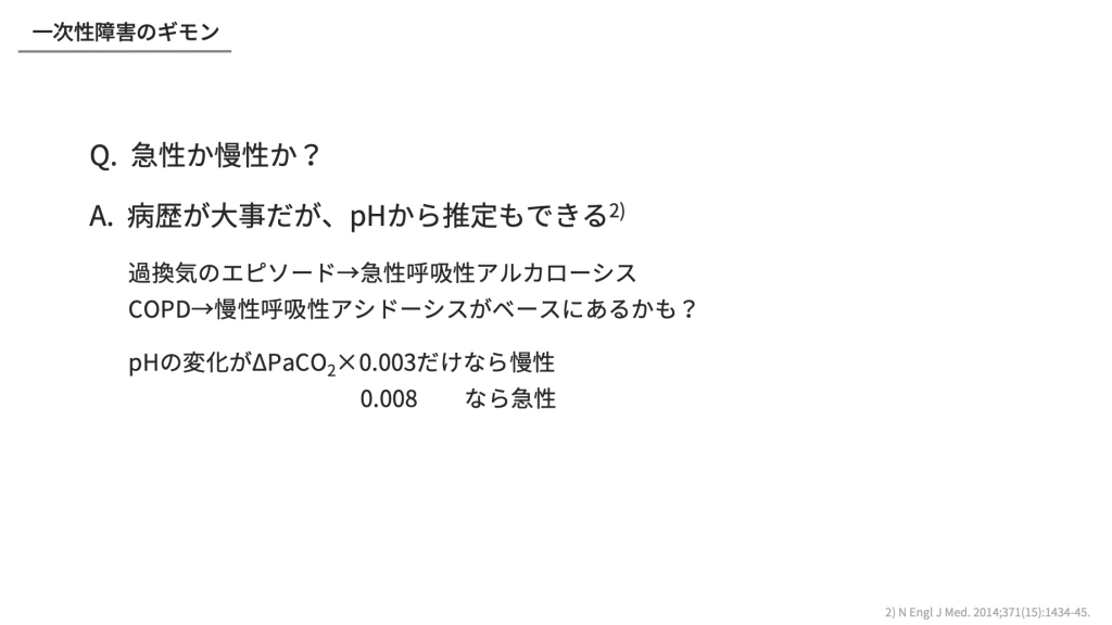 21回「酸塩基平衡 〜素早く確実にガスを読む〜」スライドです。