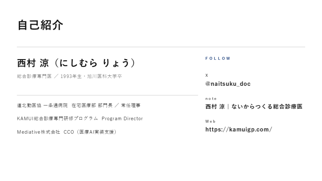 フォローいただけると嬉しいです @naitsuku_doc 西村 涼 | ないからつくる総合診療医