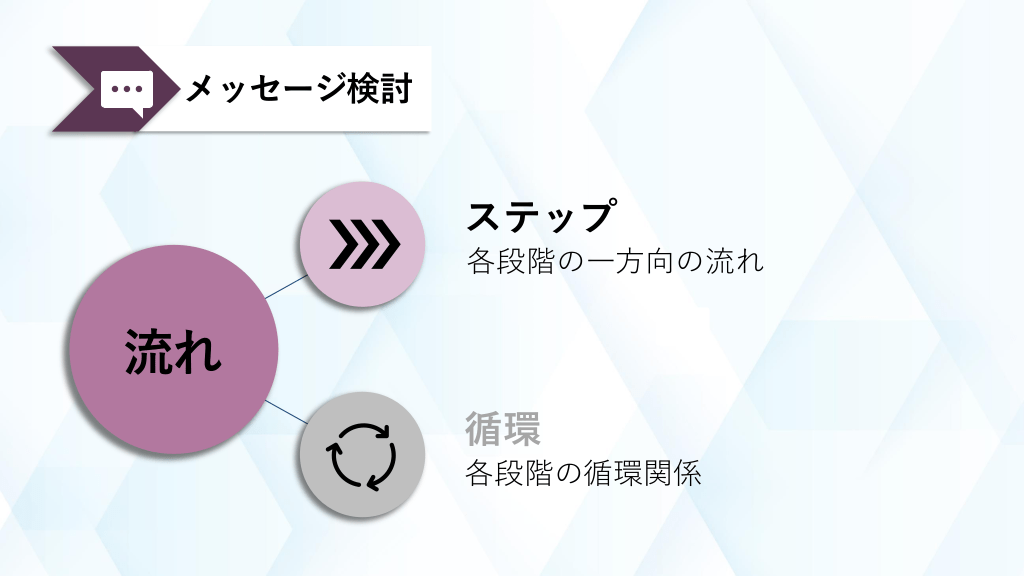 #3. メッセージ検討 ステップ 各段階の一方向の流れ 流れ 循環 各段階の循環関係