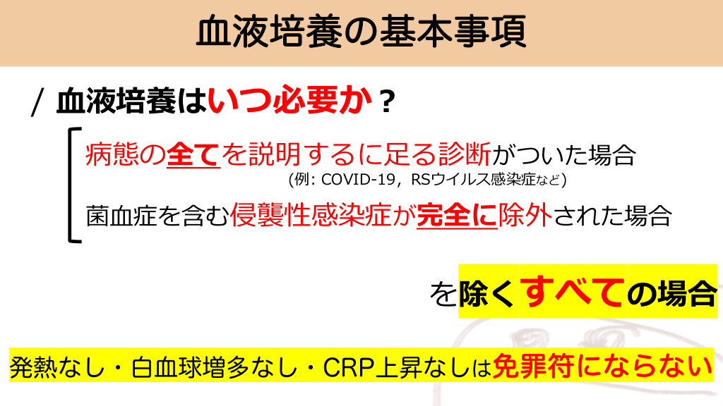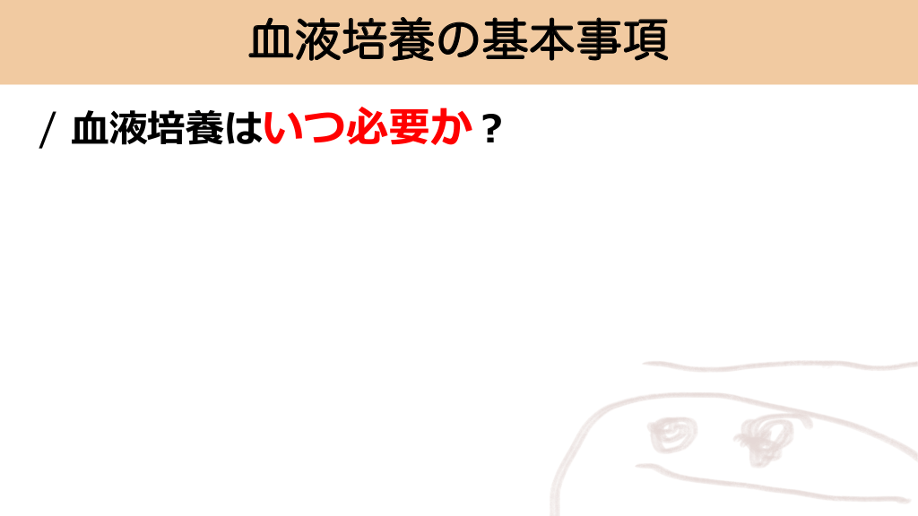 #4. 血液培養の基本事項 / ⾎液培養はいつ必要か︖