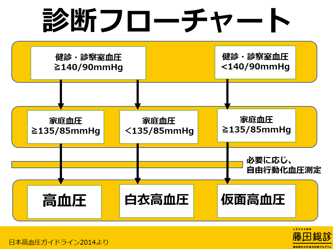 ≧135/85mmHg 高血圧 白衣高血圧 仮面高血圧 診断フローチャート 必要に応じ、